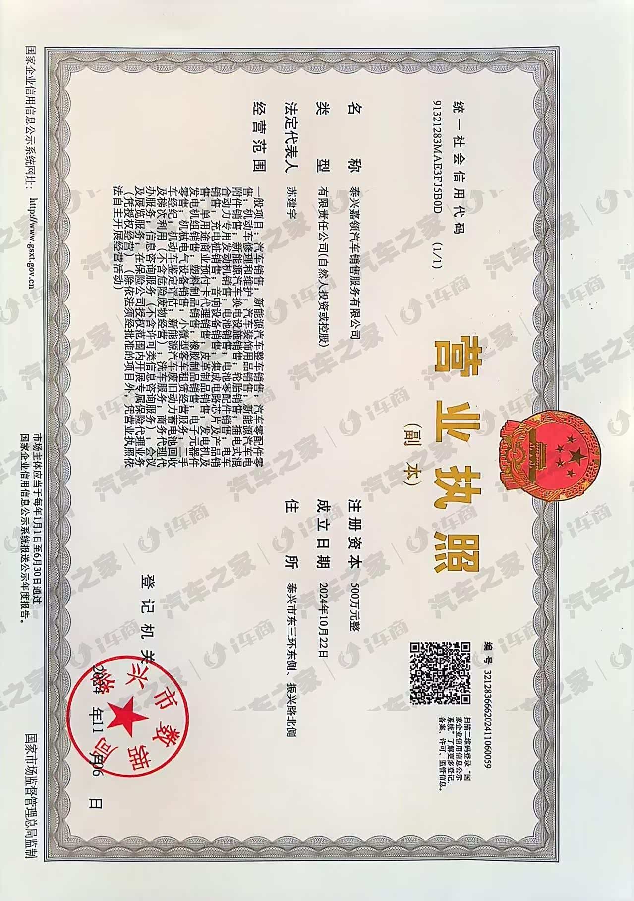 泰兴嘉领汽车销售服务有限公司