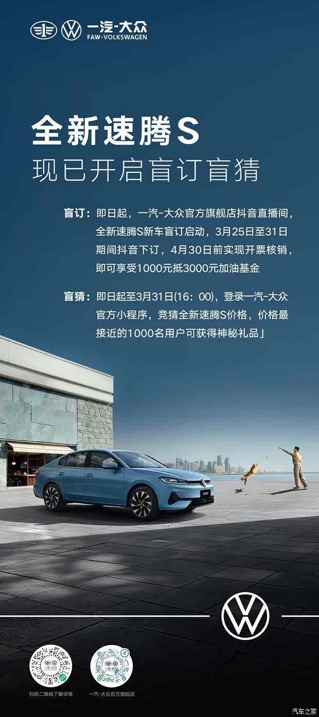 #定了!一汽-大众全新速腾S新车盲订开启,1000元抵3000元加油基金抢先享