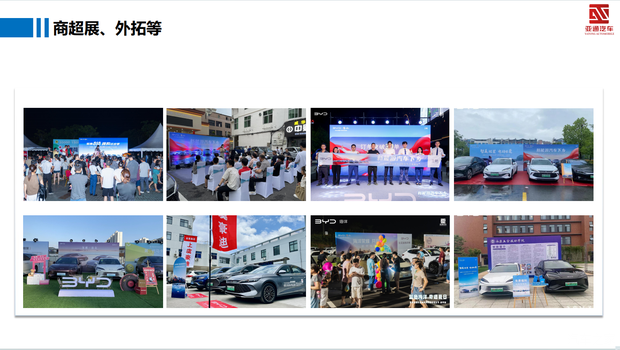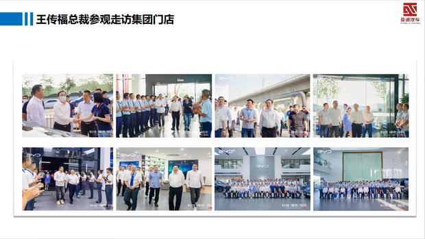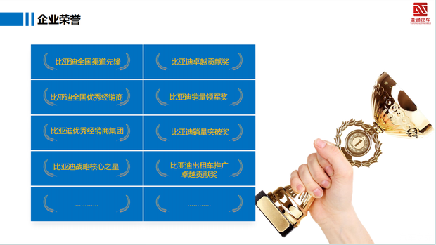 我们的口号是:我们是比亚迪的一员,我们为客户创造生活的喜悦!我们创造梦想!我们超越梦想!我们一路同驰骋!