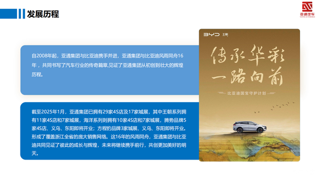 方程豹义乌五洲汽车城店是比亚迪授权规模最大的城市展厅店,公司位于五洲大道恒风汽车城。方程豹金华方成豹店隶属于金华亚通集团,亚通集团自2008年6月成立以来,始终深耕于汽车销售与服务领域,现已成为该行业的领军企业。集团以比亚迪品牌为核心,主要经营品牌有比亚迪王朝 、比亚迪海洋、腾势 、方程豹。业务广泛覆盖新车销售、二手车业务、汽车融资、租赁、配件供应、售后服务及市场企划等多个方面,致力于为金华及周边地区的消费者提供全方位、高品质的汽车服务。