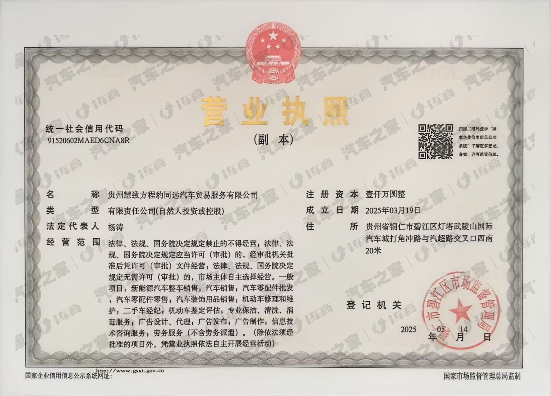 贵州慧致方程豹同远汽车贸易服务有限公司