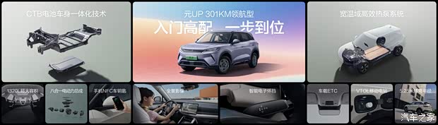 今年,300公里的小型电动车市场需求激增,调查显示,这部分用户日常以城区代步为主、出行半径通常在50公里以内,部分用户甚至一天也就开个不到30公里,300公里续航即可支持一周的用车所需。而目前这个需求庞大的市场可选的车型不多,不是配置裸、就是小两厢,年轻人想选一款更大、更安全、更好开的小型精品 SUV基本选无可选。这次,元UP加推301KM领航型,正是为这群年轻人量身定制,以“7字头”的价格为年轻人提供了即时满足之选。