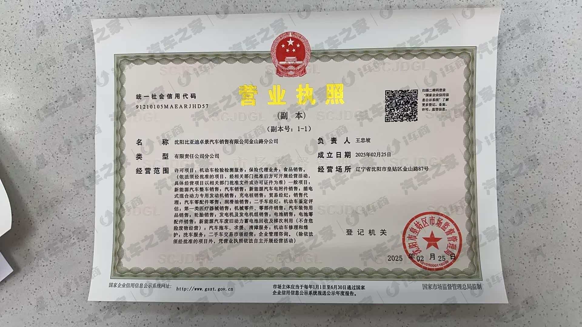 沈阳比亚迪卓景汽车销售有限公司金山路分公司