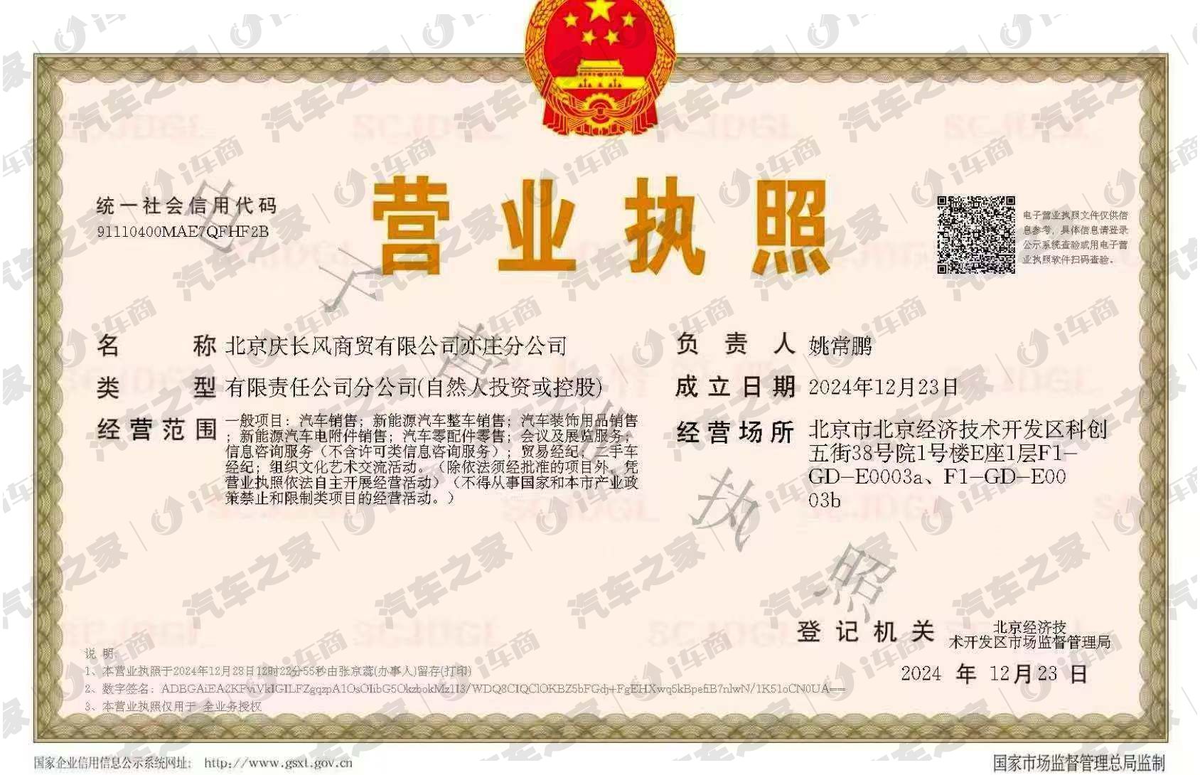 北京庆长风商贸有限公司亦庄分公司