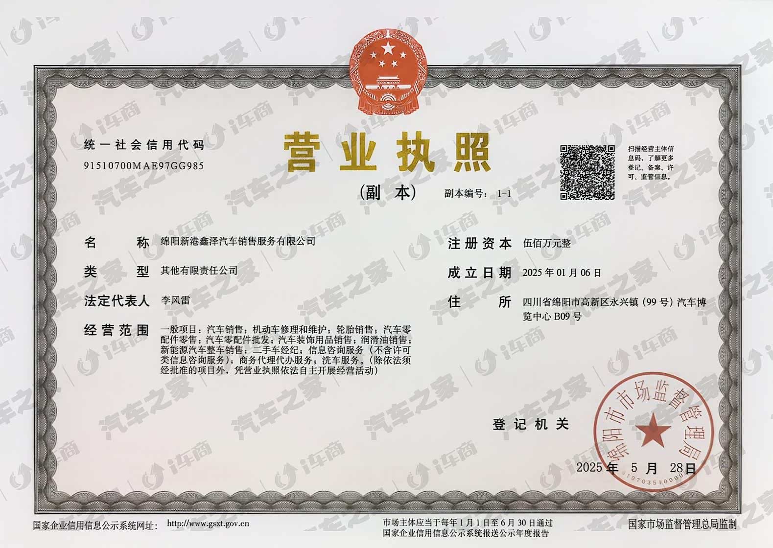 四川省绵阳市高新区汽车博览中心新港鑫泽腾势汽车4S店