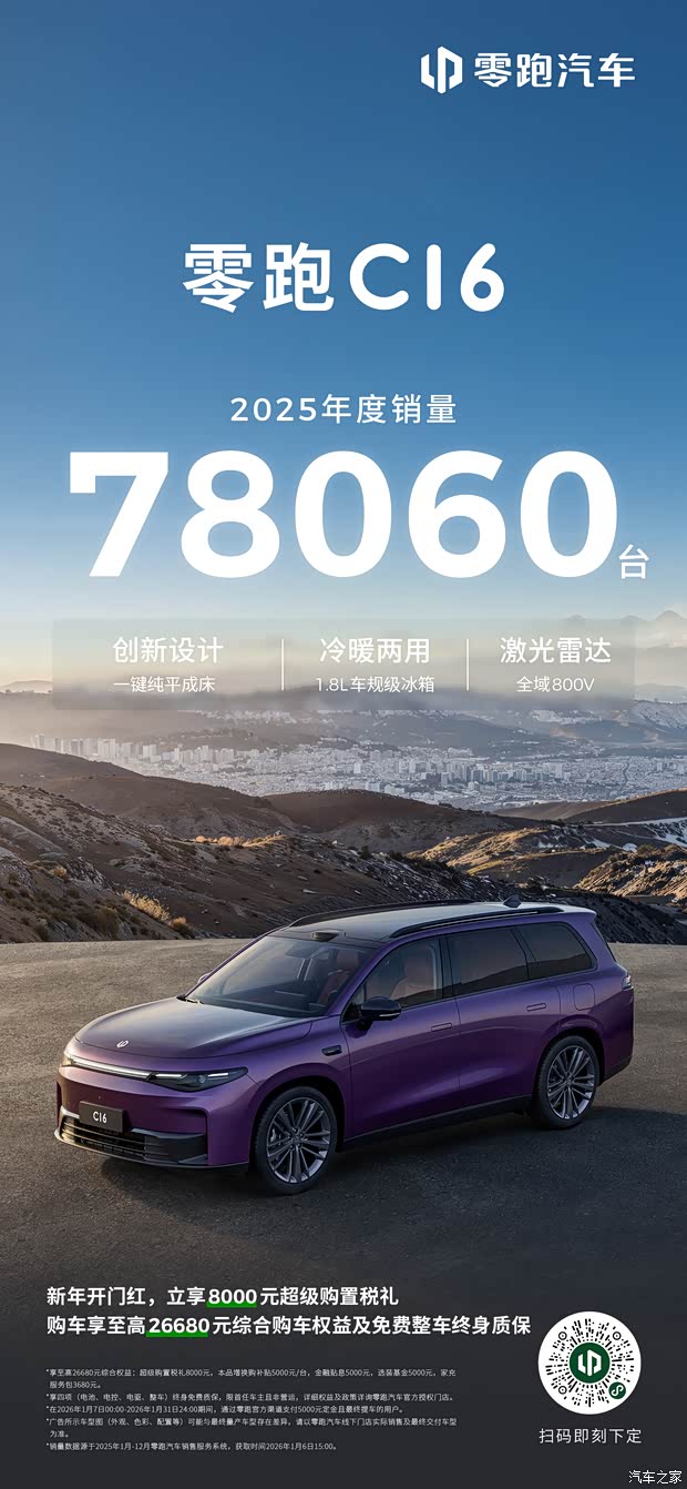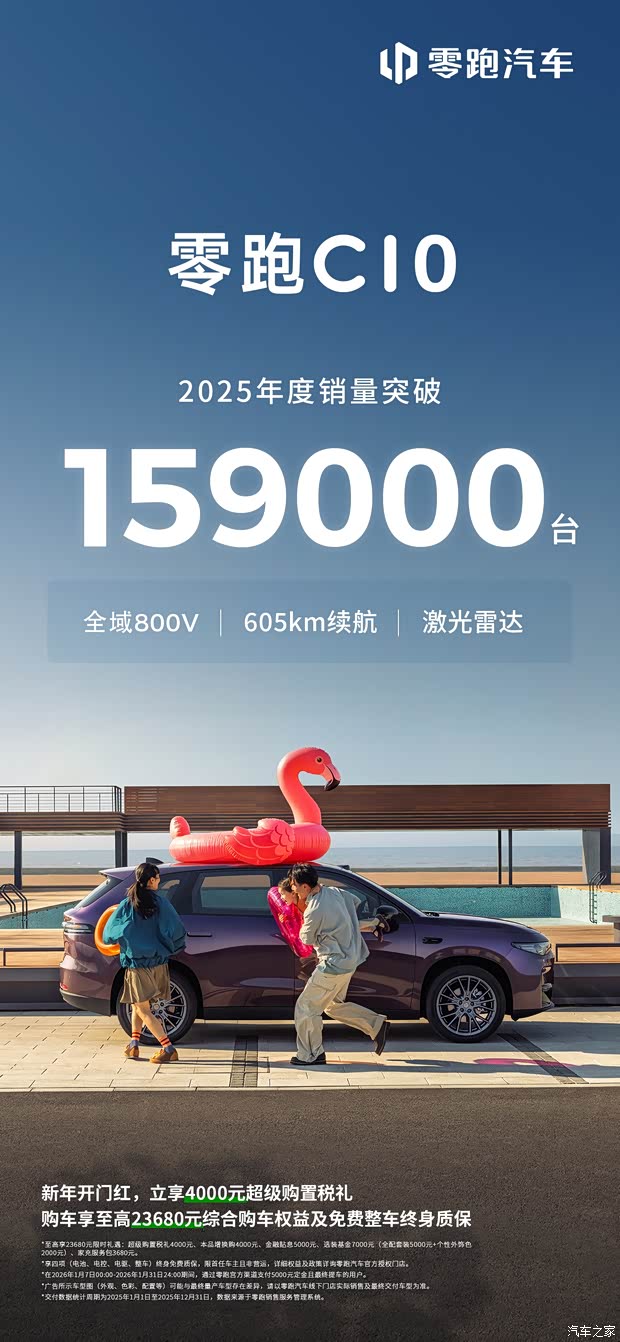 #零跑C10 年度销量超159000台,全球品质铸就年轻人更理想的家 #零跑C16 年度销量超78060台,更多家庭青睐的移动大空间 #零跑C11 年度销量超95000台,全能实力诠释越级之选 #零跑C系SUV家族,年度销量突破33万台 双核动力超长续航,家庭出行C位!