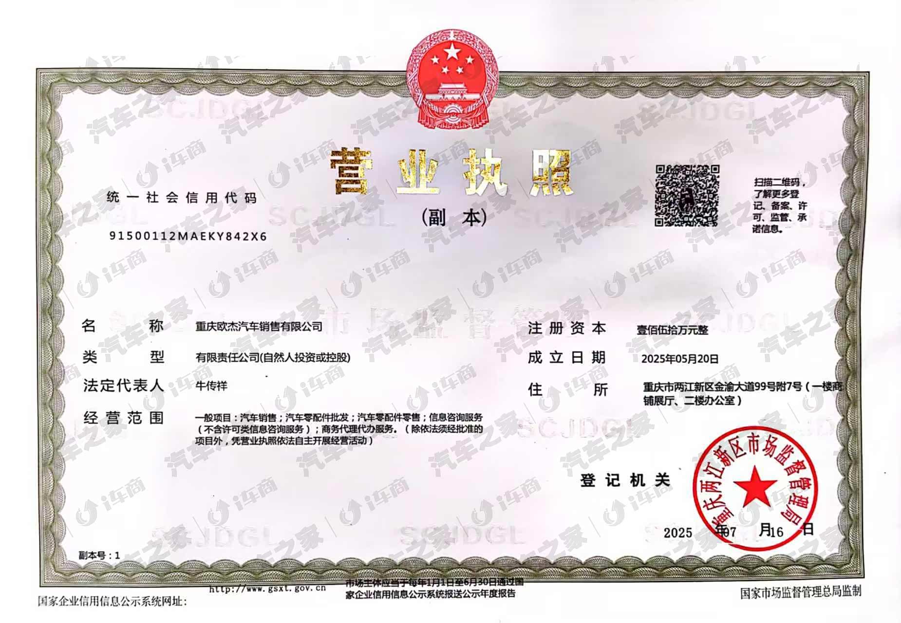 重庆欧杰汽车销售有限公司