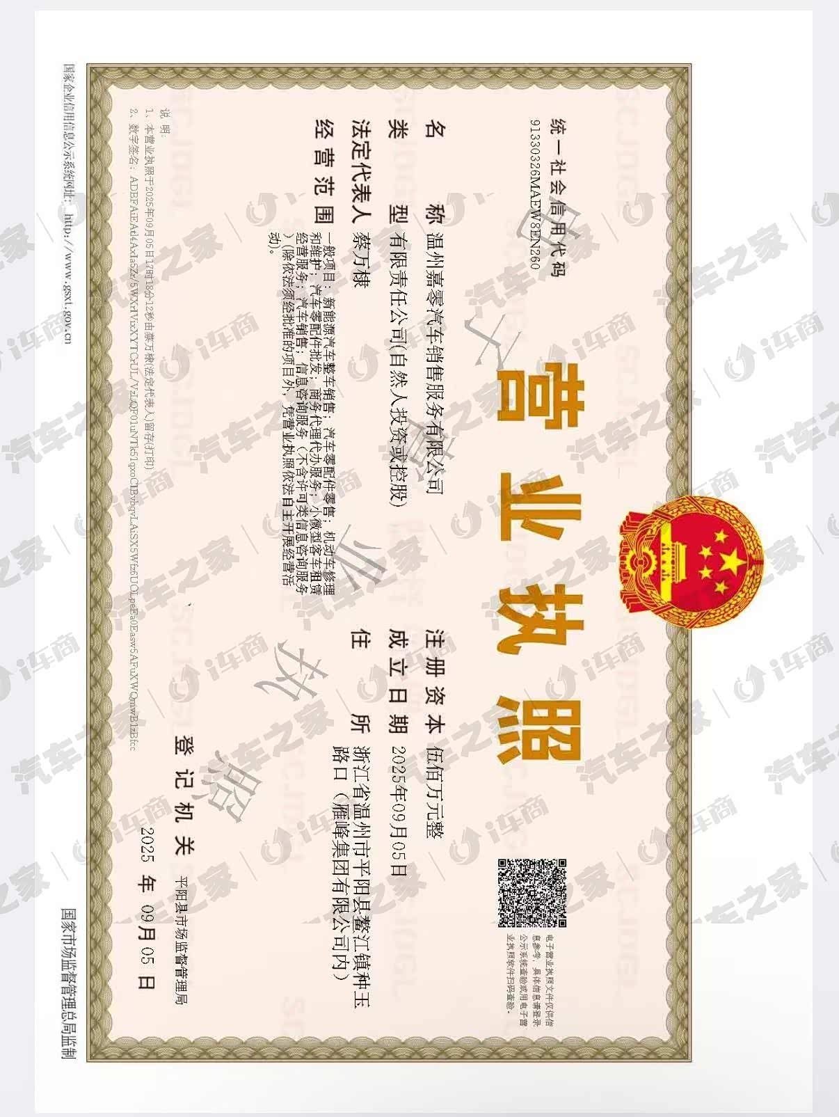 温州嘉零汽车销售服务有限公司