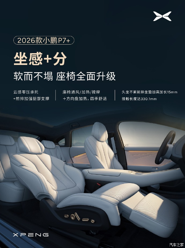 云感零压承托+前排加强腿部支撑+坐垫升级,久坐不累。