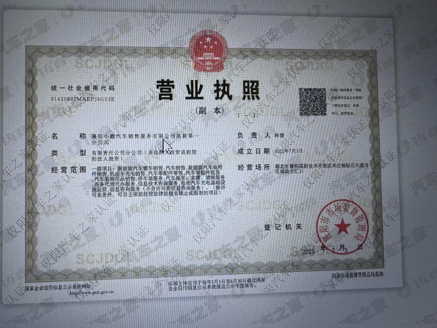 襄阳小鹏汽车销售服务有限公司高新第一分公司