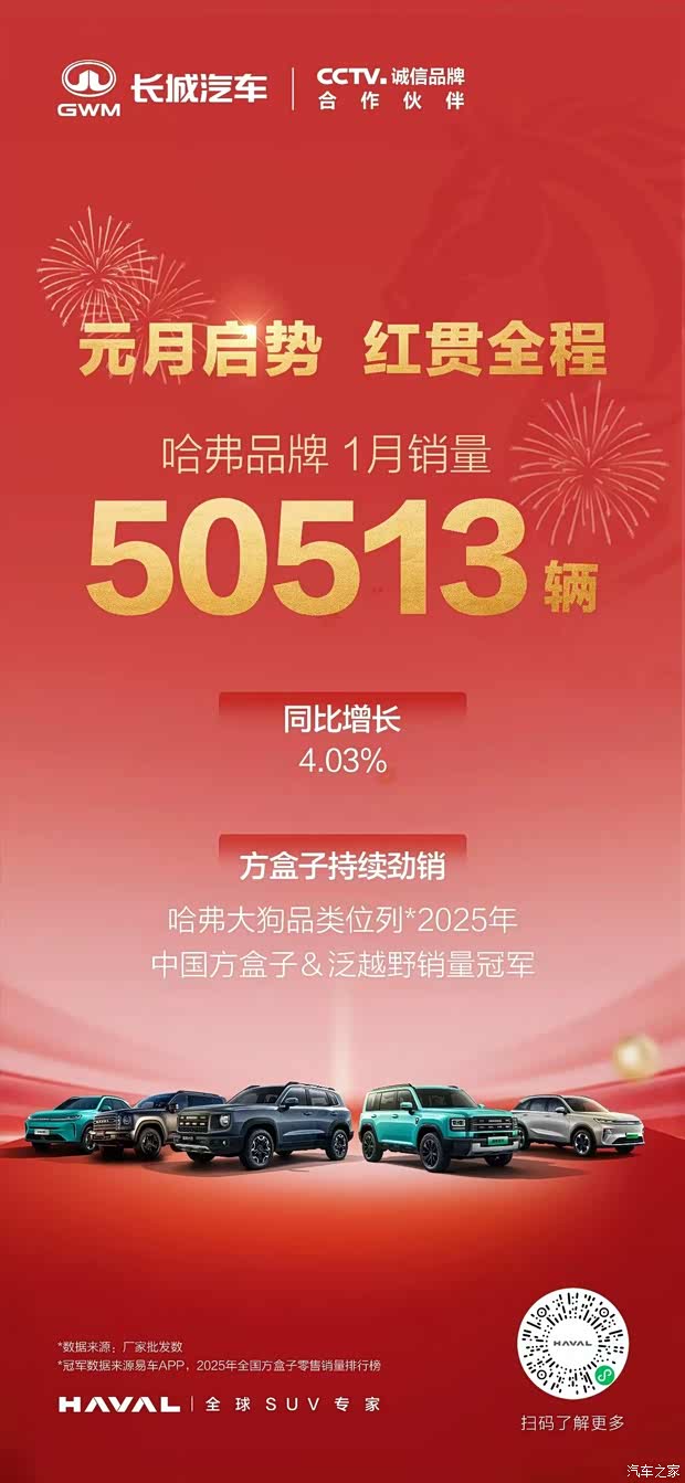 成绩出来了|哈弗1月销量50513辆,同比上升