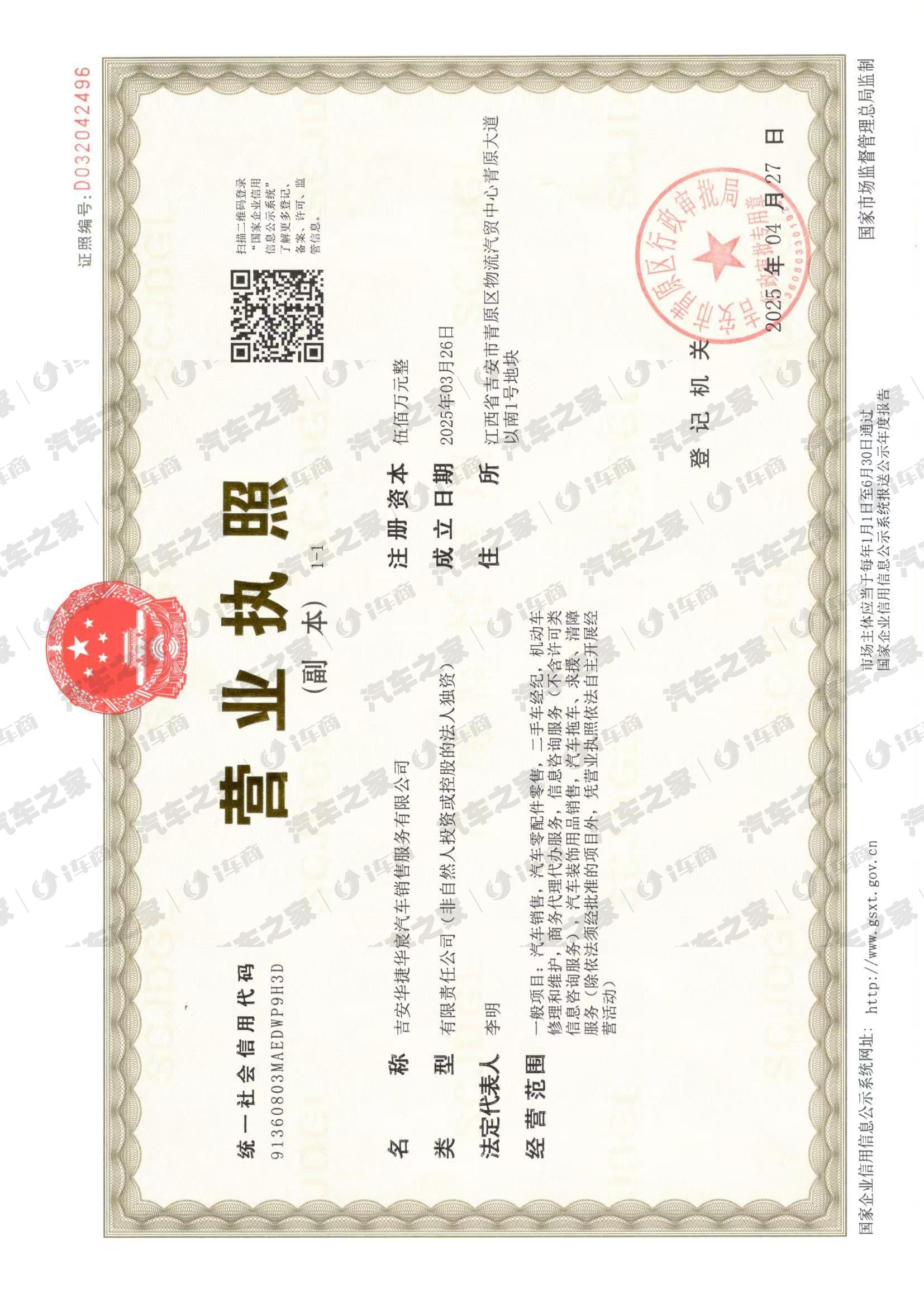 吉安华捷华宸汽车销售服务有限公司