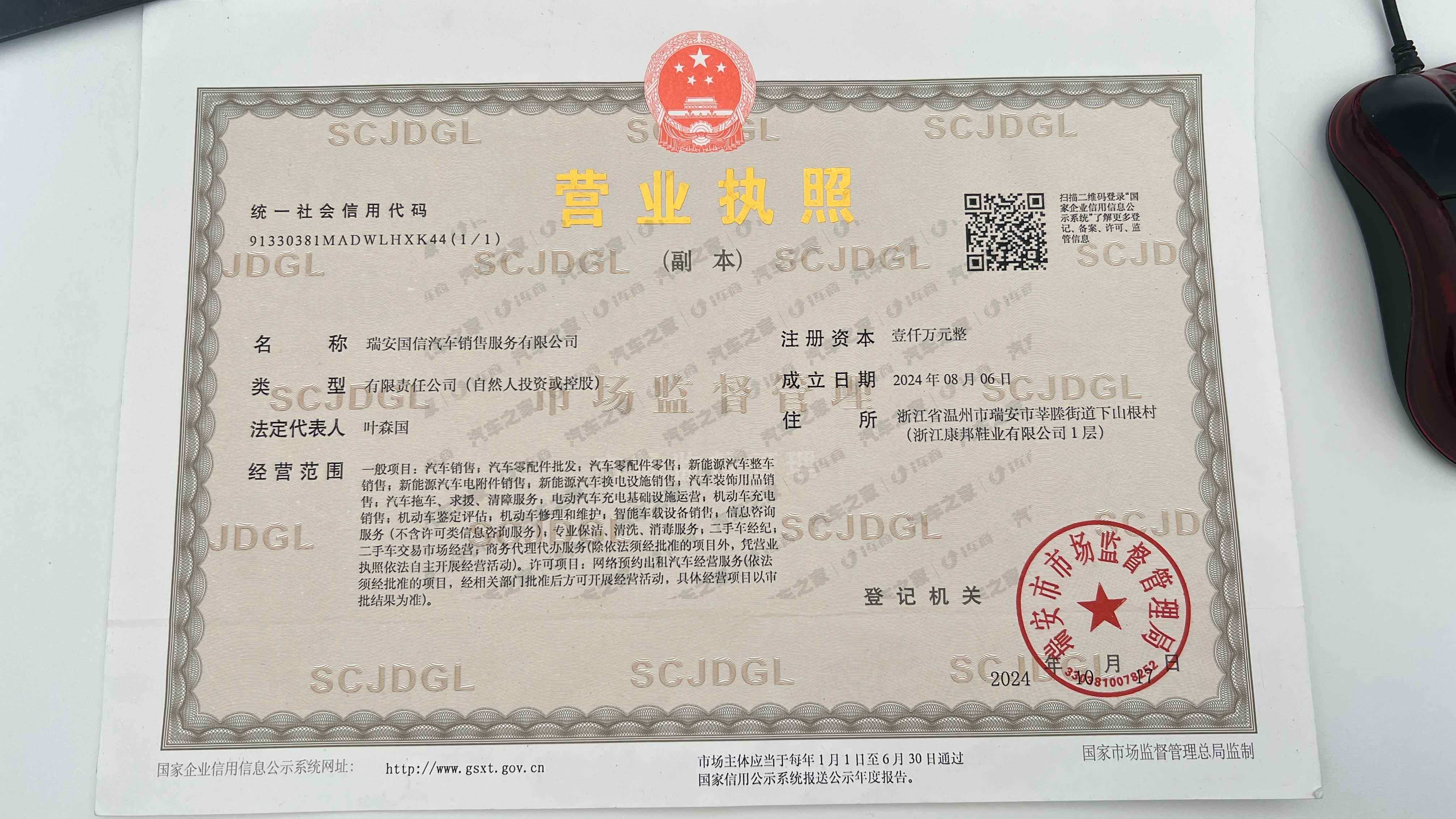 瑞安国信汽车销售服务有限公司