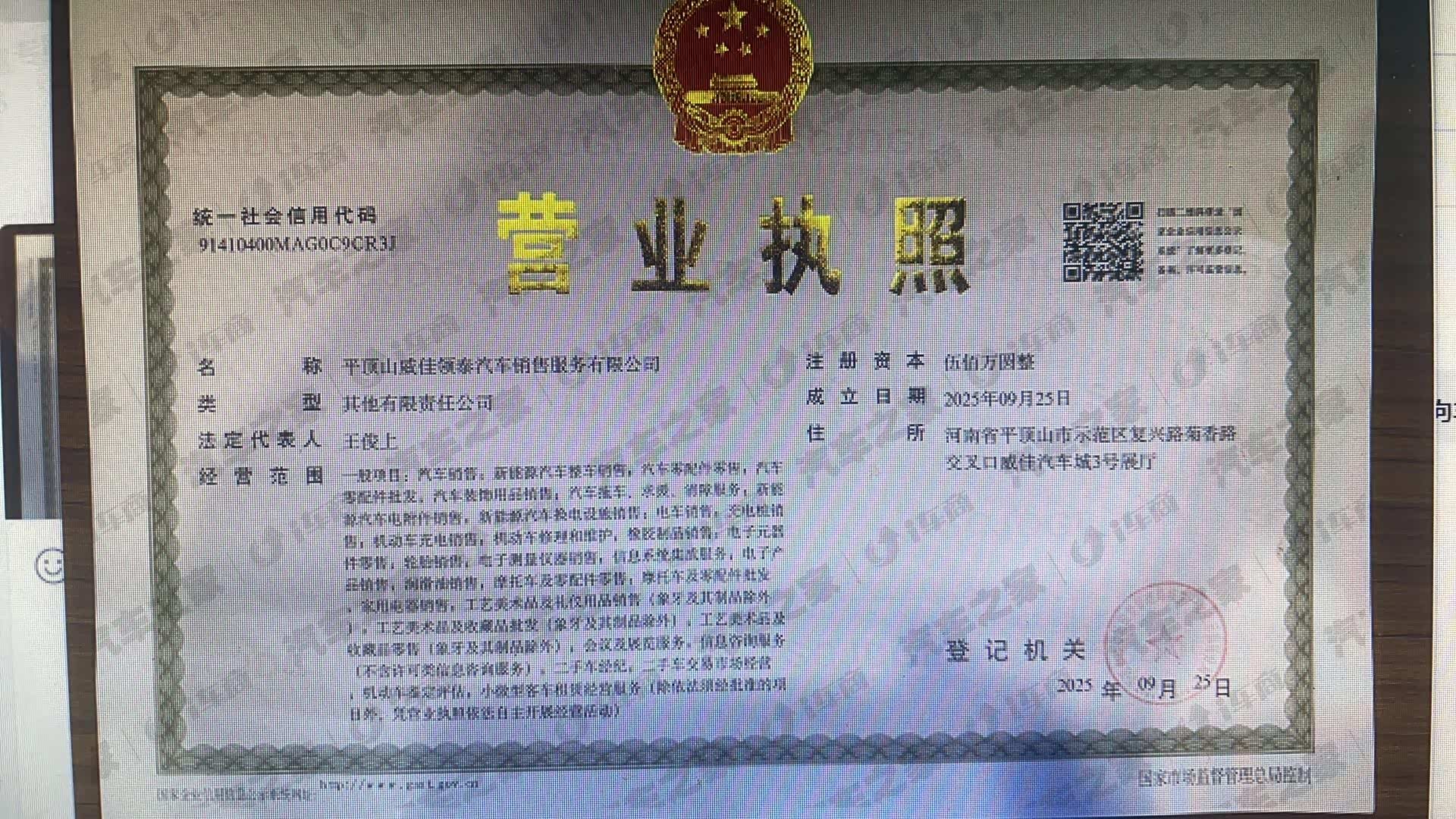 营业执照: