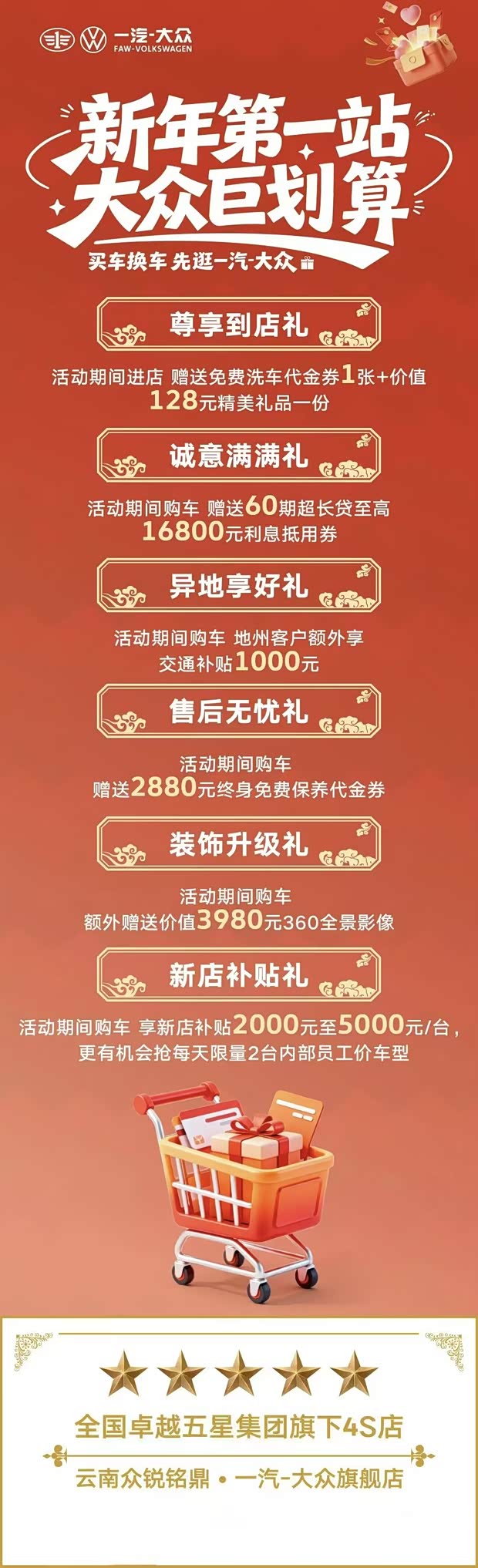 1月1日-31日,赶紧行动起来,欢迎来【云南众锐铭鼎4S店】开启你的一汽-大众购车福利之旅吧
