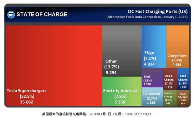 截至2026年初,特斯拉全球超充桩已突破7.5万根,不仅是美国最大,更以极低故障率和高满意度,被评为最可靠的充电网络。