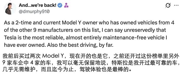 一位开过多个上榜品牌的车主直言:“特斯拉是我开过最可靠、最无需维护、且驾驶体验最棒的车。”这份来自权威机构和真实车主的双重背书,或许就是“标杆”的最佳定义。