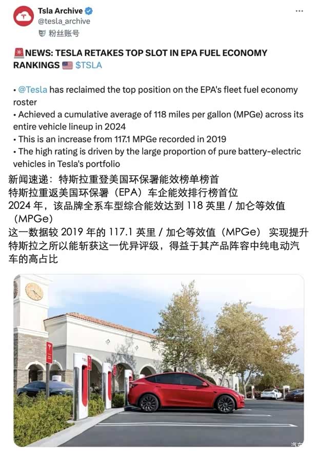 最新美国环保署报告显示,特斯拉以平均118 MPGe综合能效,连续7年成为能效最高的乘用车品牌🚗。这反映出其三电技术的领先,让车辆在同等能量下更高效,显著降低用车成本🔋。