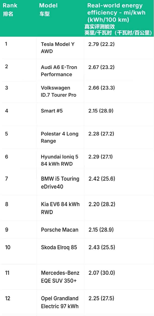 ▶️实测表现突出:德国ADAC对14款纯电动车严寒高速测试,Model Y平均能耗22.2kWh/100km,荣膺最省电车型📸。