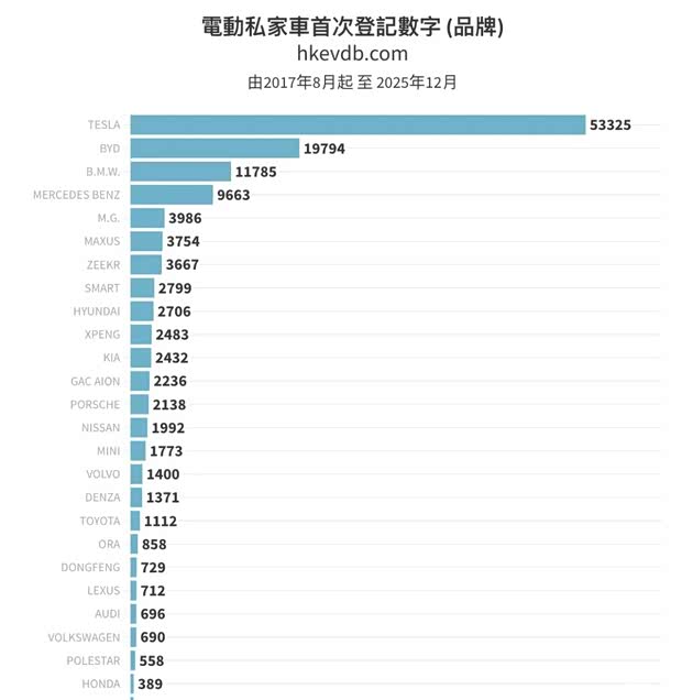 自2017年进入香港市场以来,特斯拉累计销量已超5.3万辆,稳居纯电私家车销量榜第一。对比其他品牌,特斯拉累计销量是第二名的2.7倍、宝马的4.5倍、奔驰的5.5倍,更是Audi的76倍之多,堪称香港纯电市场的“常青树”。