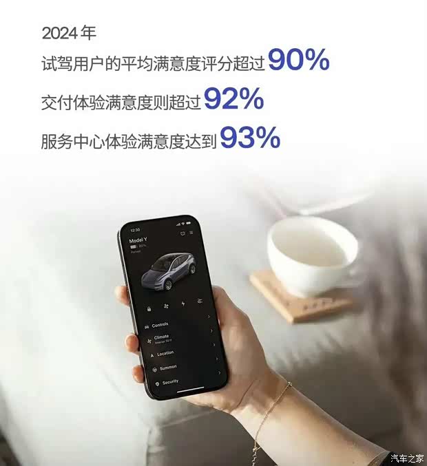 从多项服务满意度数据来看,特斯拉服务中心满意度达到93%,试驾体验满意度超过90%,车辆交付环节满意度也在92%以上,从看车、购车到用车后的维修保养,全链路服务都获得了用户的较高评价。