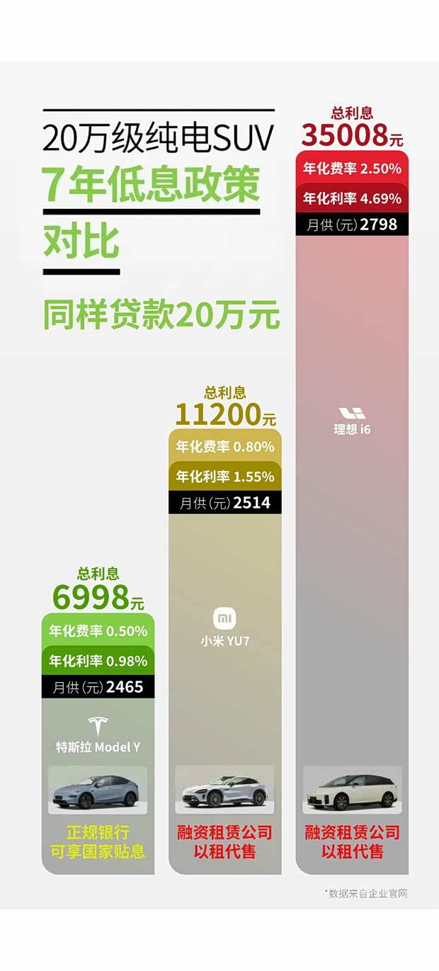 首付门槛上,岚图0%首付门槛最低,特斯拉设14%+、25%+双梯度,高首付享更低利率。利率方面特斯拉优势显著,25%+首付折合年化利率仅0.98%,同贷20万总利息仅6998元,是理想的1/5。金融机构上,特斯拉、ZEEKR等合作银行,小米、吉利等多为厂家/第三方金融,前者征信要求高但无套路,后者易有抵押、违约金限制。此外特斯拉、XPeng等无捆绑保险,吉利、HYPTEC等强制首年店端保险,提前还款规则也各有不同,选前一定要仔细核对细则。