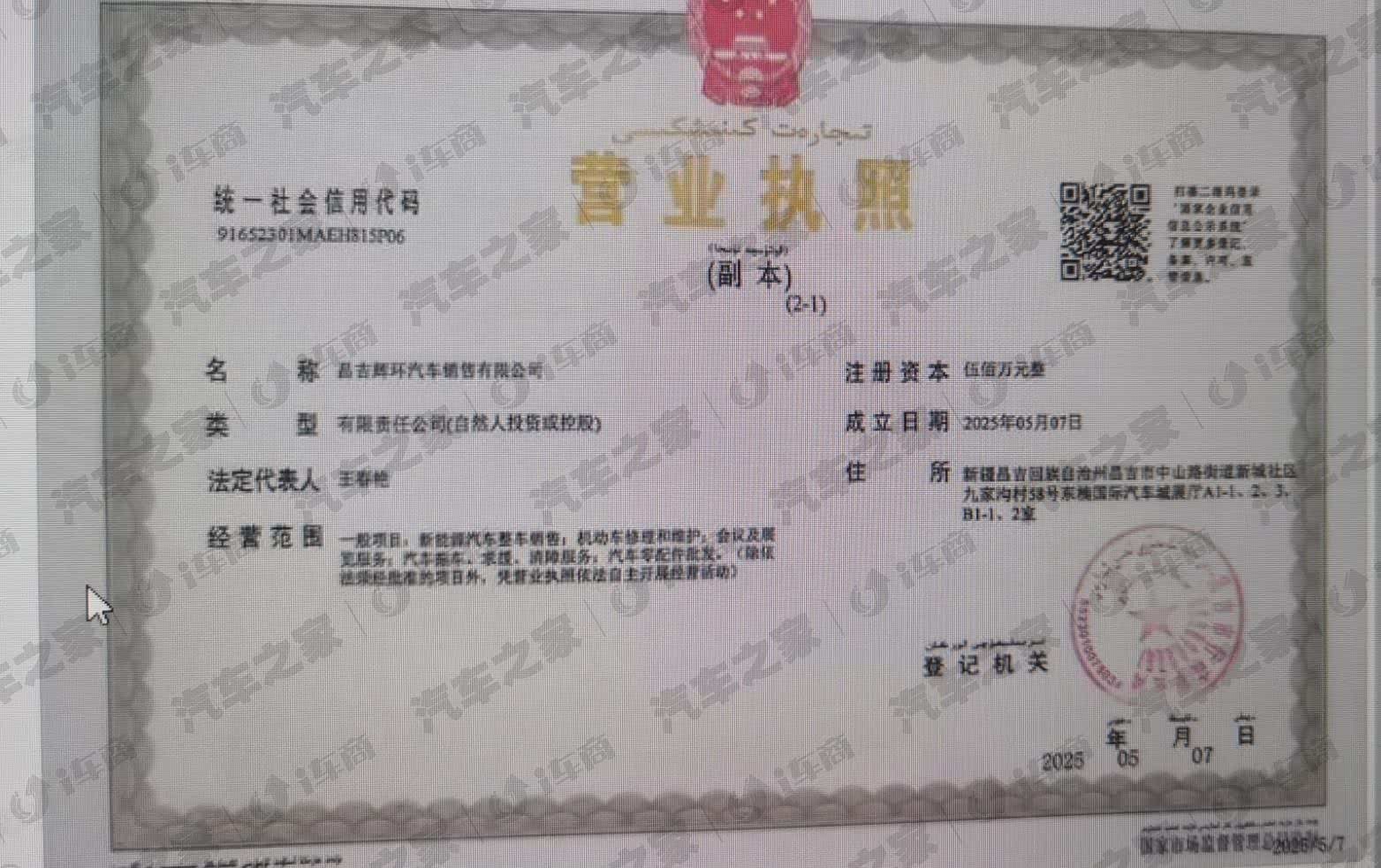 新疆昌吉回族自治州昌吉市九家沟村58号东楠国际汽车城展厅A1-1、2、3,B1-1、2室