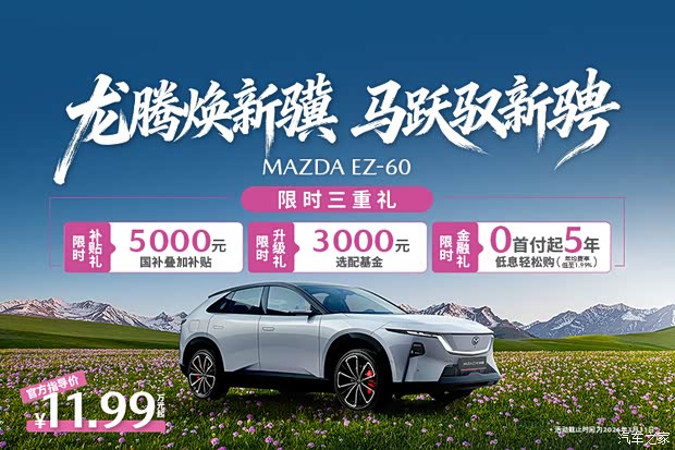 即日起至2026年3月31日,下订购买长安马自达EZ-60车型,除新国补外还可享限时三重礼!