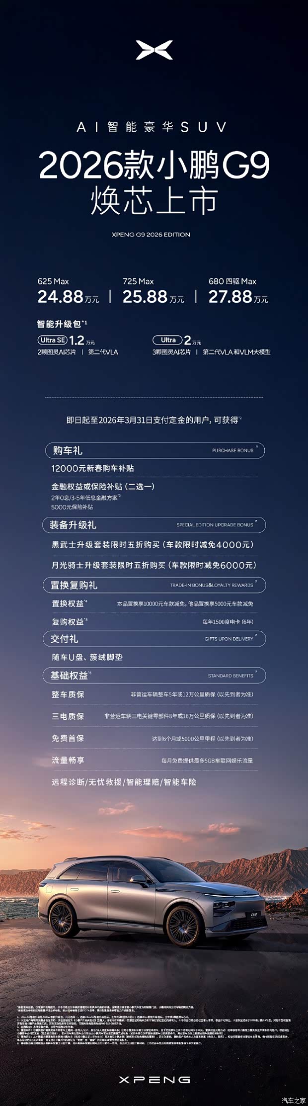 2026款小鹏G9,AI智能豪华SUV,售价24.88万元起!