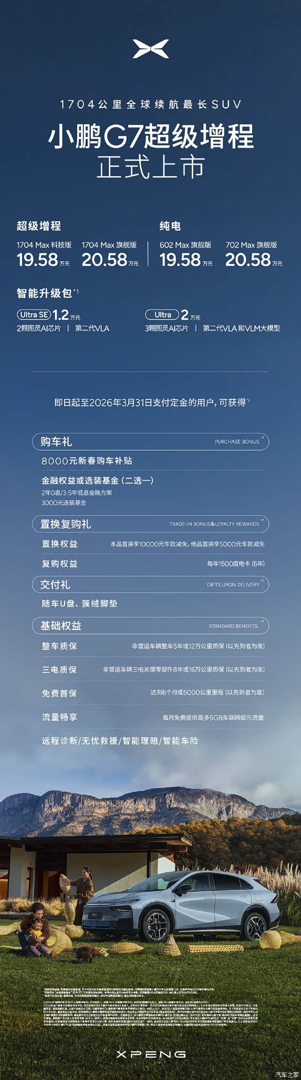 小鹏G7超级增程,1704公里全球续航最长SUV,售价19.58万元起!