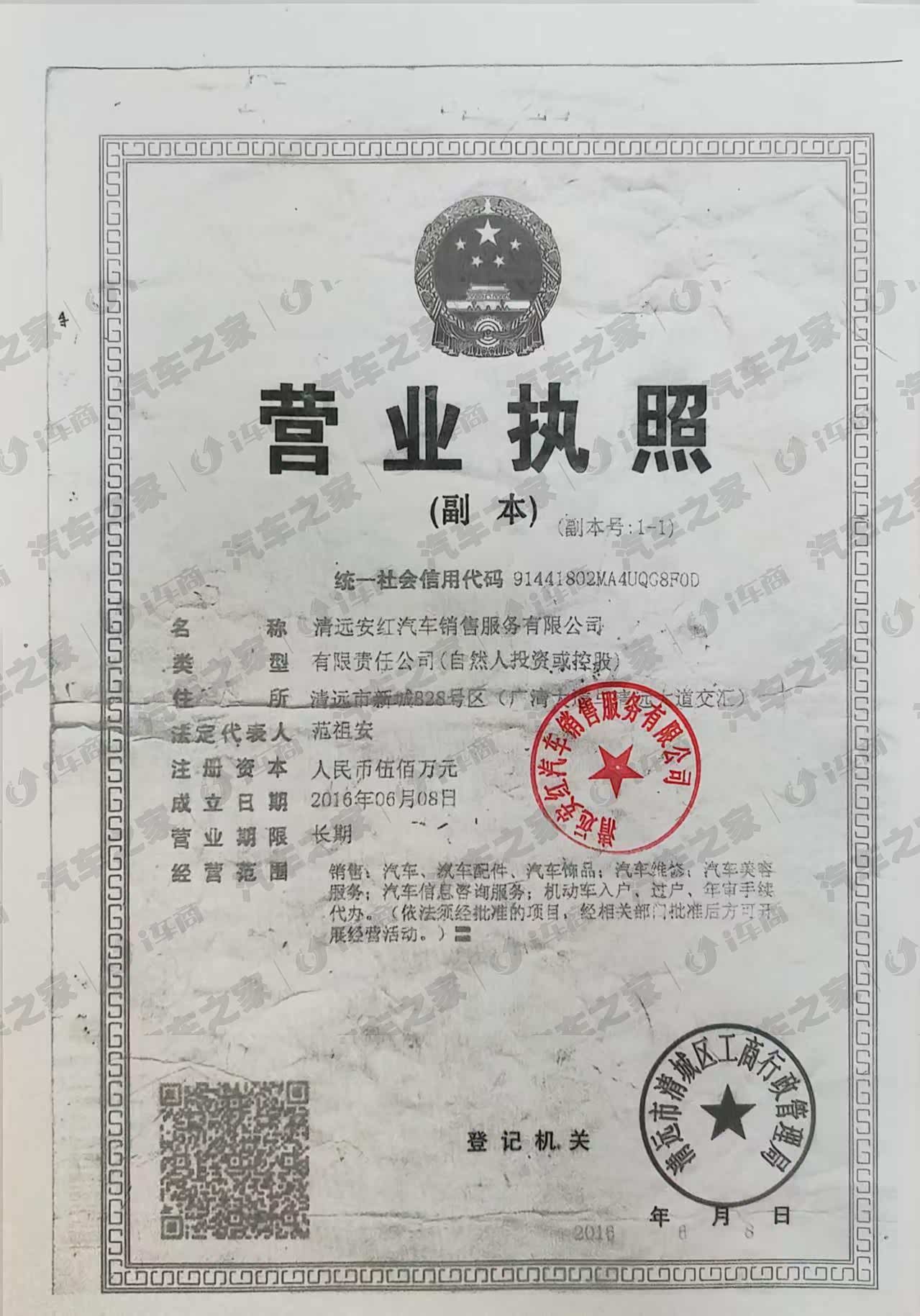 清远安红汽车销售服务有限公司