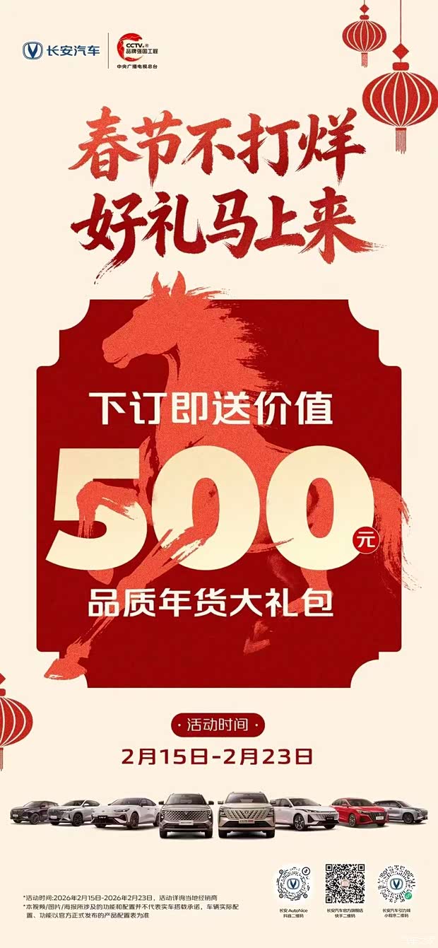 #春节不打烊 好礼马上来年货不用买,新春长安送大礼!丨2月15日-2月23日丨下订即送价值500元品质年货大礼包!马年开长安,新年更好运!