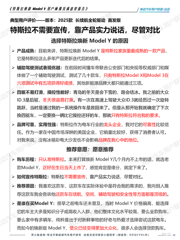 特斯拉焕新Model Y的车主大多是像张先生这样的理性派,他们购车时不被过度宣传带偏,更看重车辆的实用价值和技术内核。报告中能看到,车主们对车辆的核心性能、实用配置认可度极高,尤其是芯片直控带来的流畅操控、精简线束带来的可靠性,以及超实用的空间设计,都成为大家选择它的关键理由。没有夸张的营销话术,全靠产品力说话,这种“低调实力派”的特质,正好戳中了理性消费者的购车需求,也让Model Y长期保持高热度。🔥