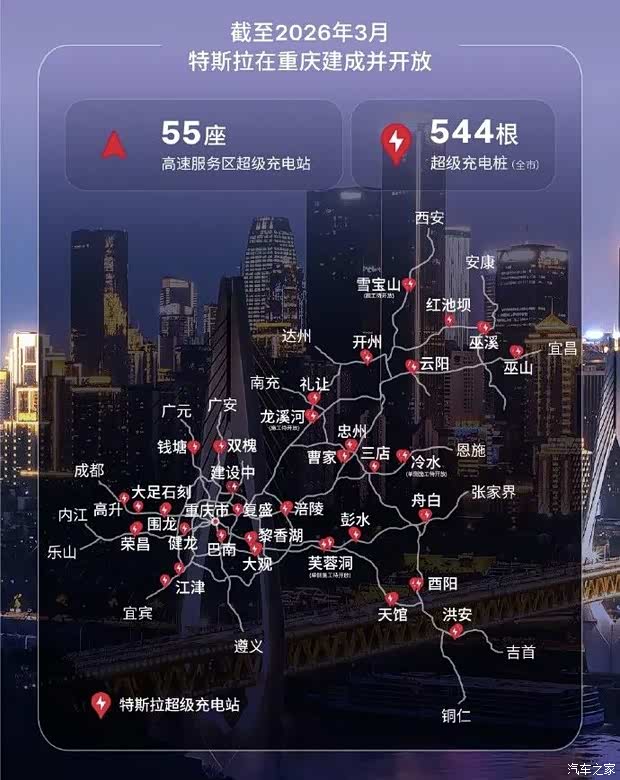 📍全域覆盖,跨省畅行!55座超充站遍布重庆10条国家高速公路,平均每1小时车程一座,覆盖主城及渝东北、渝东南,还能辐射川鄂湘黔陕等省份,新能源车主跨省自驾再也不用为充电发愁。