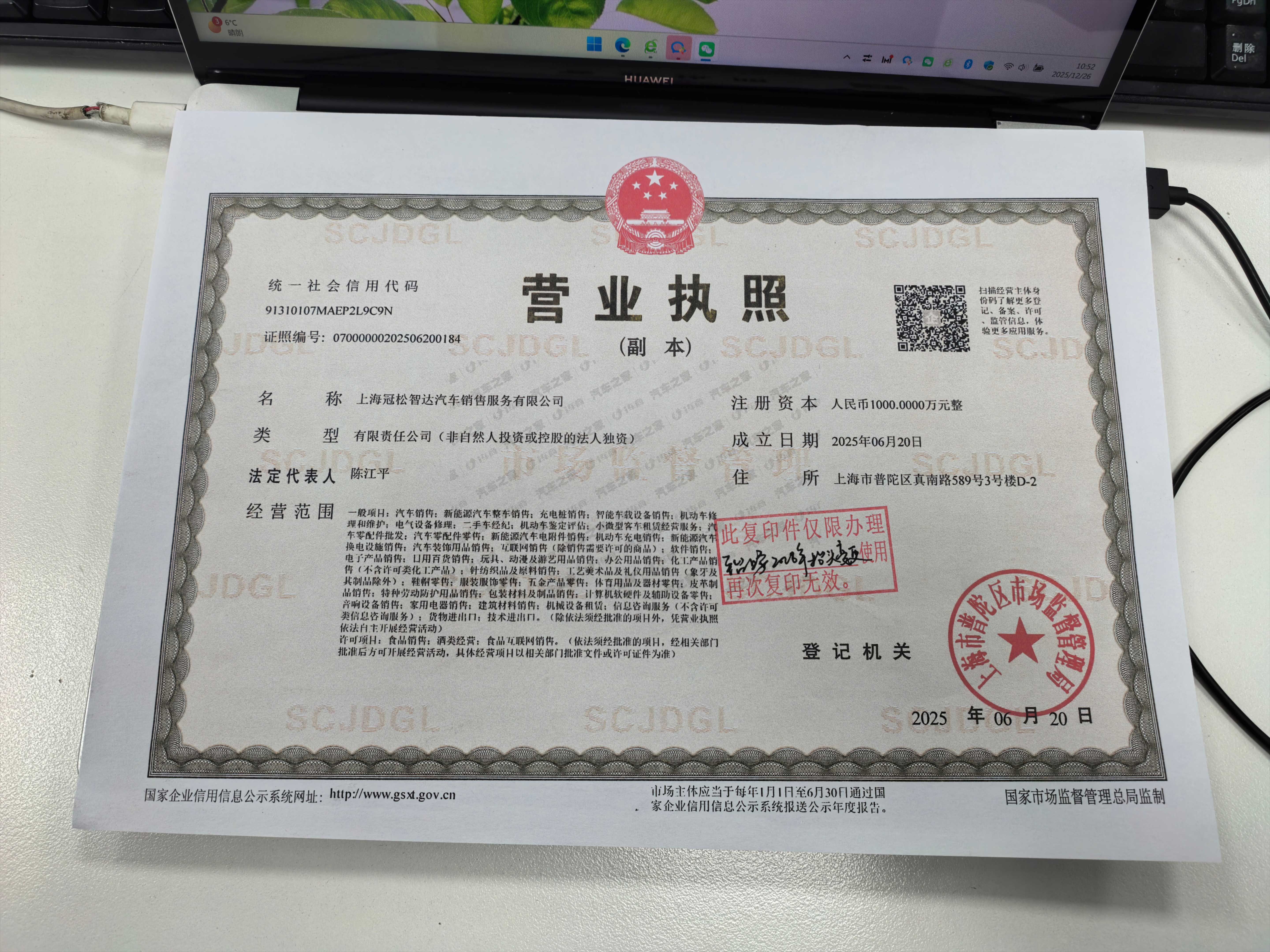 营业执照: