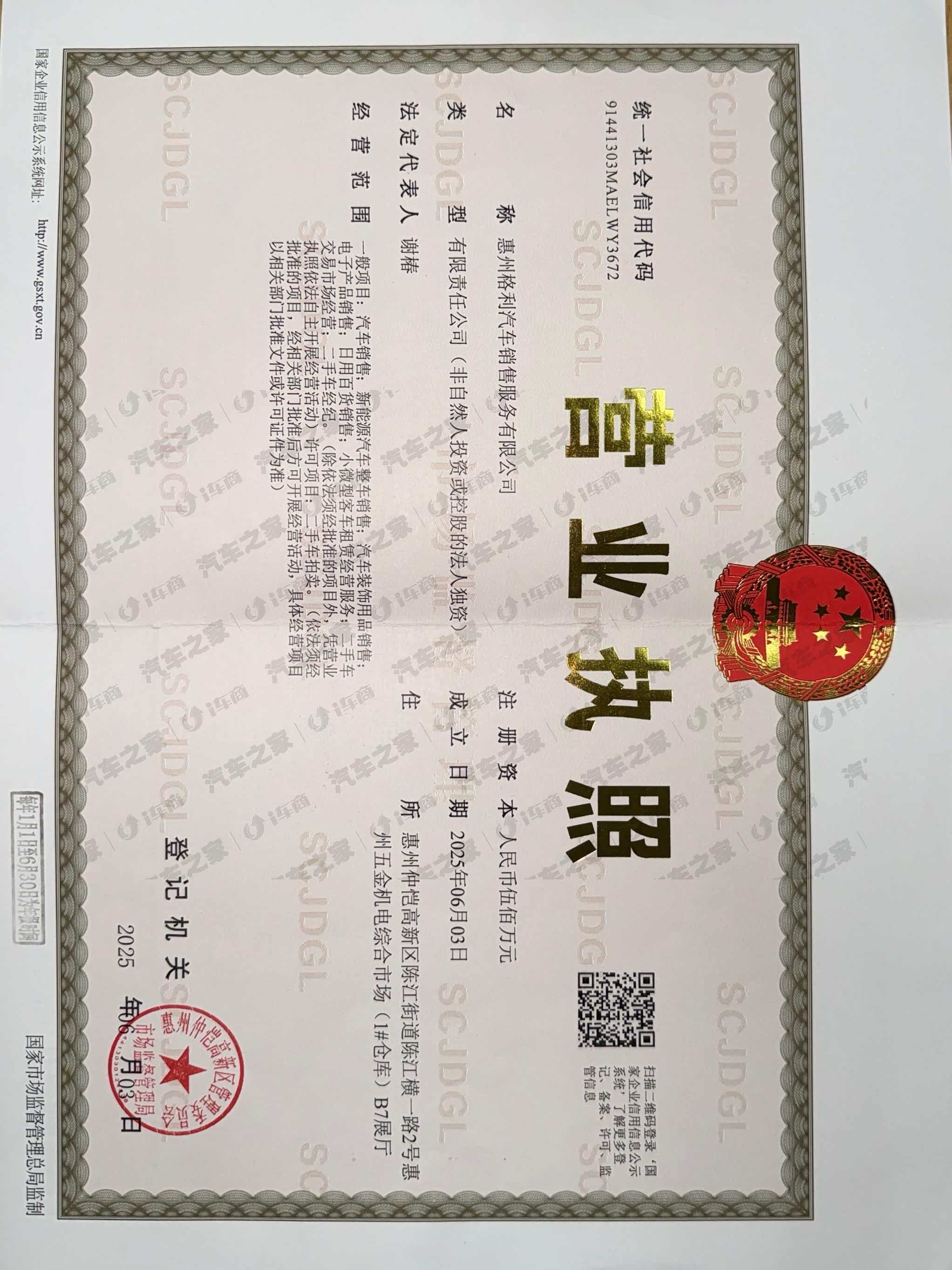 惠州格捷汽车销售服务有限公司