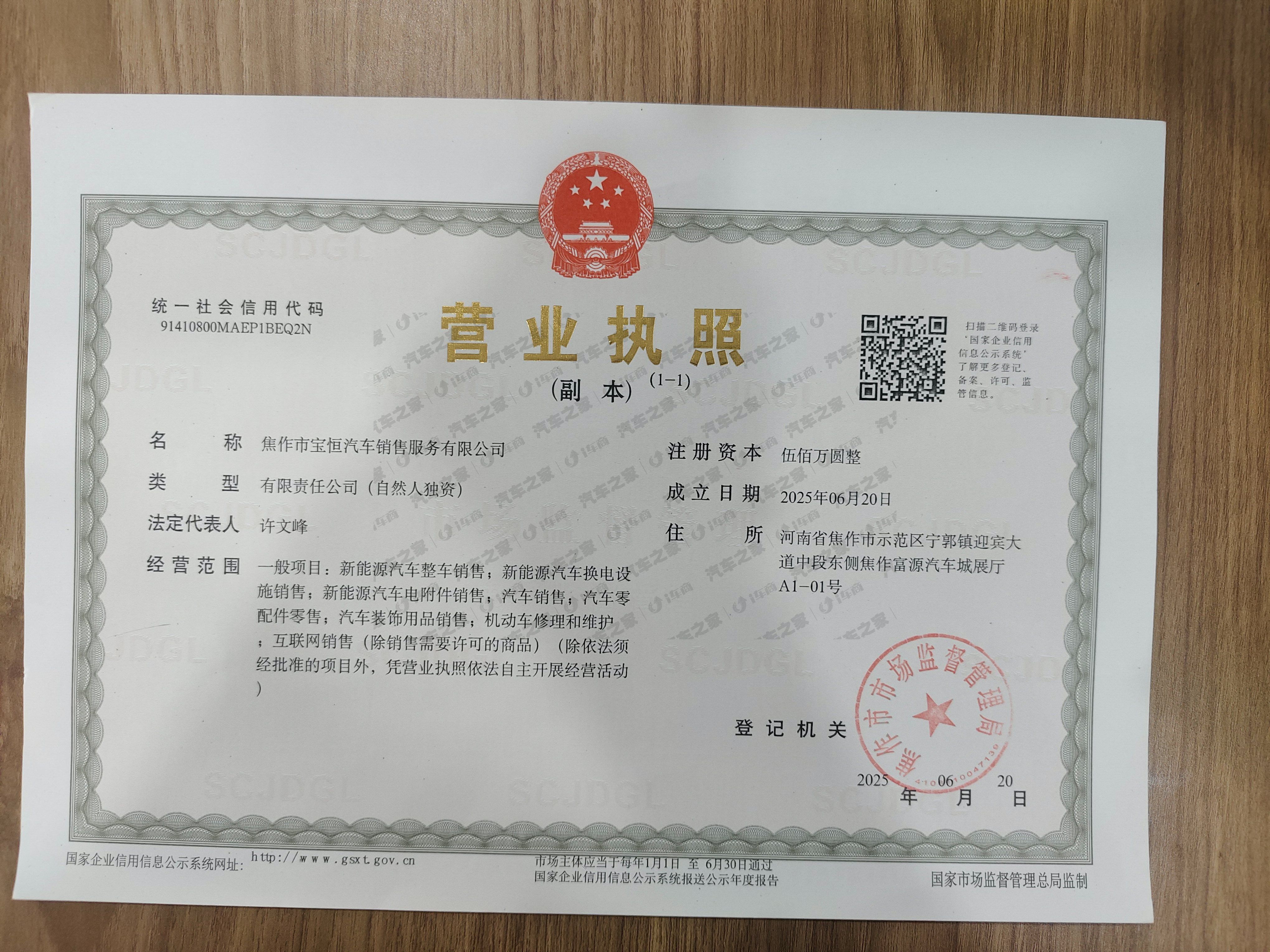 焦作市宝恒汽车销售服务有限公司