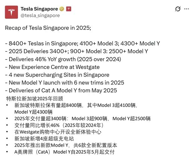 ✅ 市场认可:新加坡交付量同比+46%,街头能见度飙升