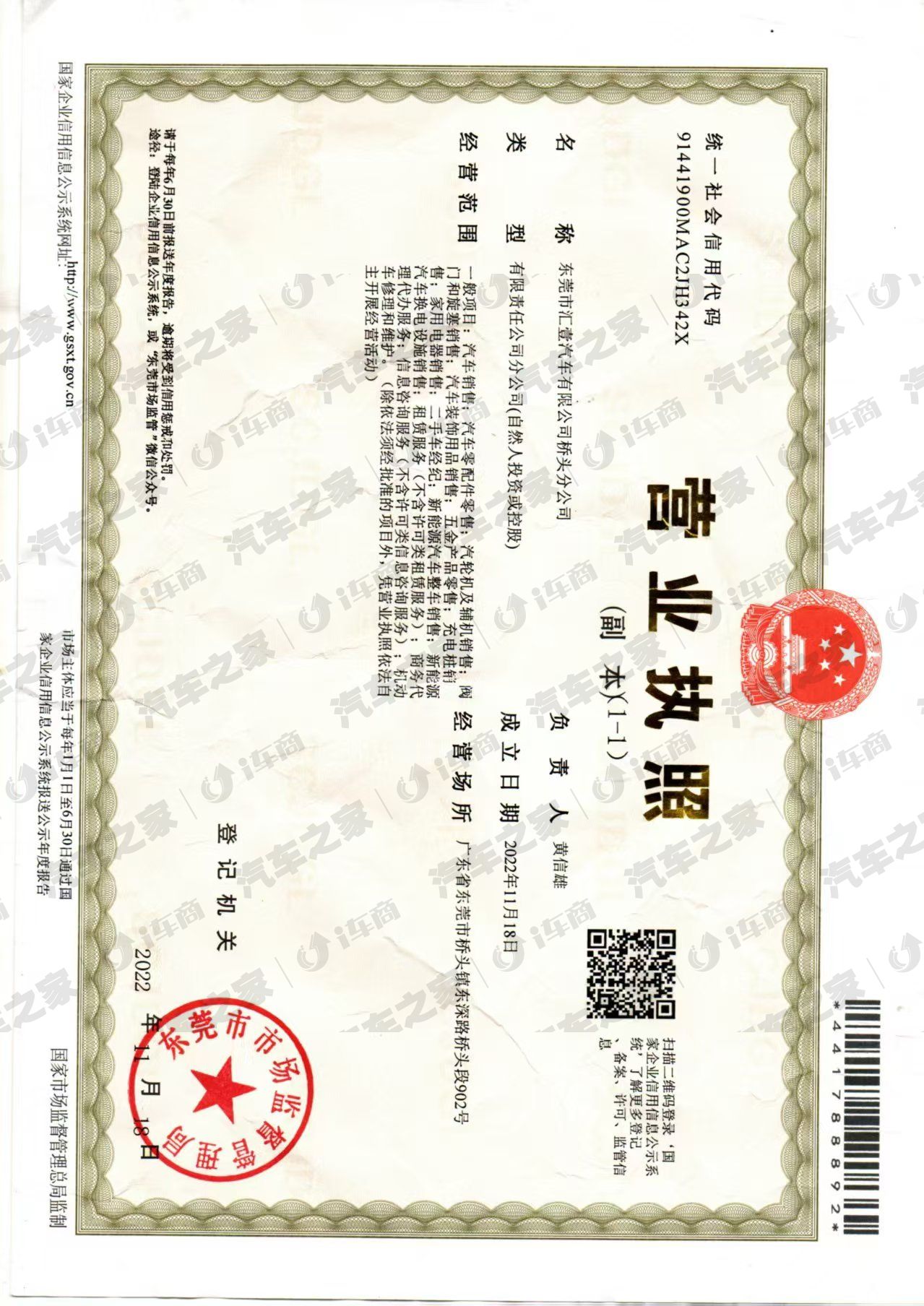 东莞市汇壹汽车有限公司桥头分公司