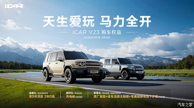 对于追求全家高品质出行的家庭用户,iCAR V27无疑是2026年最值得期待的硬派SUV之一。这款即将上市的家庭新硬派座驾,不仅拥有1.3米挑高通透座舱、后排可形成2150×1050mm平整大床的“移动之家”设计,更在3月迎来多重购车利好。