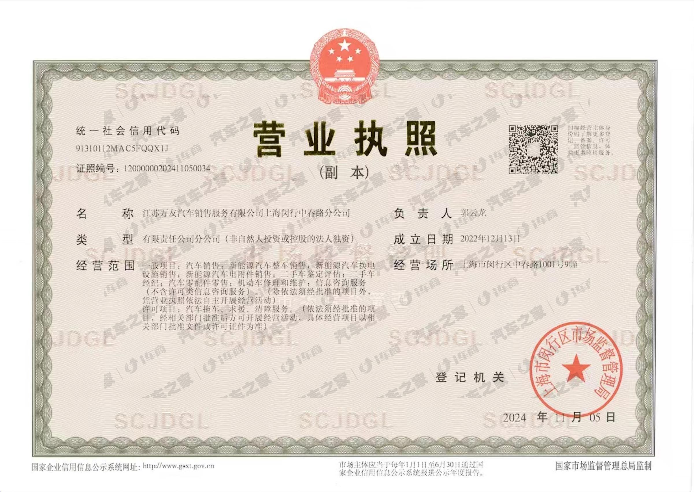 江苏万友汽车销售服务有限公司上海闵行中春路分公司