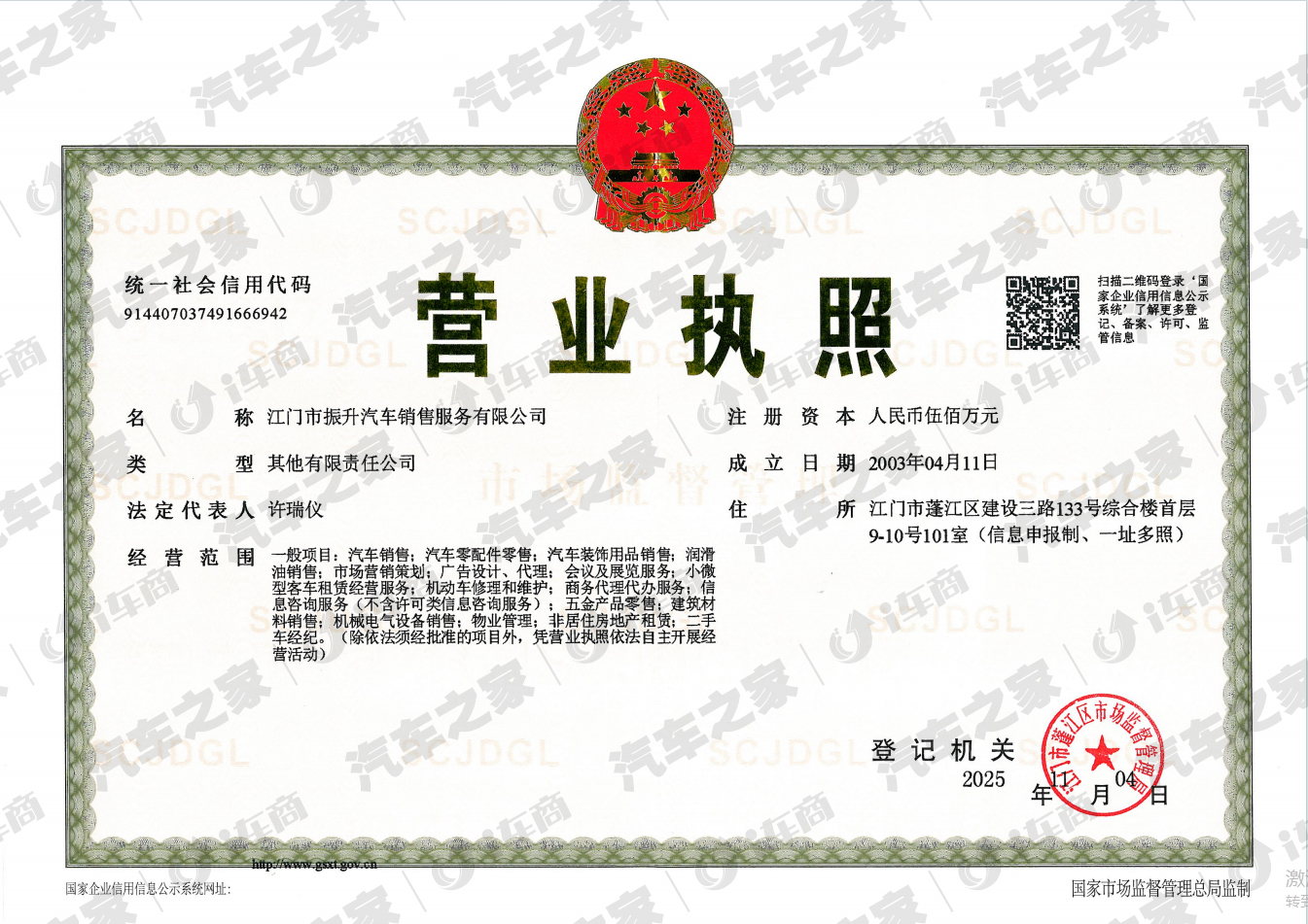 江门市振升汽车销售服务有限公司