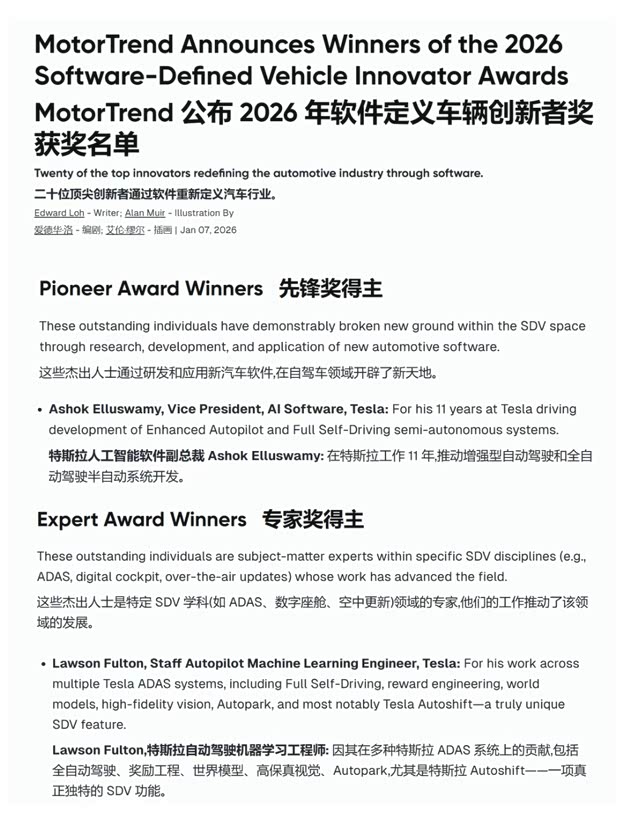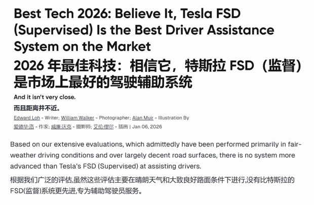 海外权威汽车媒体《MotorTrend》最新评测,给出了一个直白的结论:特斯拉FSD(监督版)是 “市场上最杰出的驾驶辅助系统”,而且“没有对手”。🏅