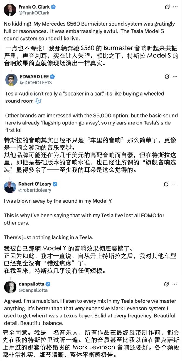 所以,别再为“品牌音响”的光环买单了。真正的优质的体验,往往藏在那些默默把核心技术做到极致的产品里。特斯拉的音响,就是一个被严重低估的典型。