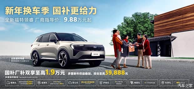 目前,2026年国补出台新政,福特领睿厂商指导价来到9.88万元起。如果是旧车置换,过节补贴至高达到13000元的同时,厂商补贴至高来到了6000元,且购车享受核心动力终身质保,并提供3年不限次数道路救援以及5年免费数据流量。作为燃油车核心成本最高的部件,福特领睿提供的核心动力终身质保服务,意味着后期维护成本减轻不少,需要考虑的仅是正常保养的开支。