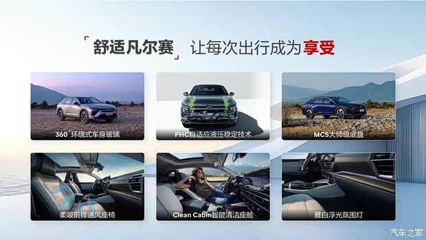 在舒适上,让每次出行成为享受。雪铁龙是全球汽车行业“舒适”的集大成者。新款凡尔赛C5 X驭不凡版型搭载雅白浮光氛围灯,以柔和雅致的白色光韵勾勒宁静舒缓的座舱氛围,营造出如月光流淌般的温馨与高级感。同时,新增的柔吸前排通风座椅,在座椅的座垫和靠背上布置有通风循环系统,运用高速静音风机产生吸力,源源不断将空气吸入座椅小孔中,有效改善人体与座椅皮面接触部分的空气流通,提升舒适体验。Clean Cabin智能清洁座舱可有效过滤PM2.5,配有空气质量传感器实时监测车外污染物,智能切换内外循环。让舒适操控随心驾驭,更加舒心惬意。