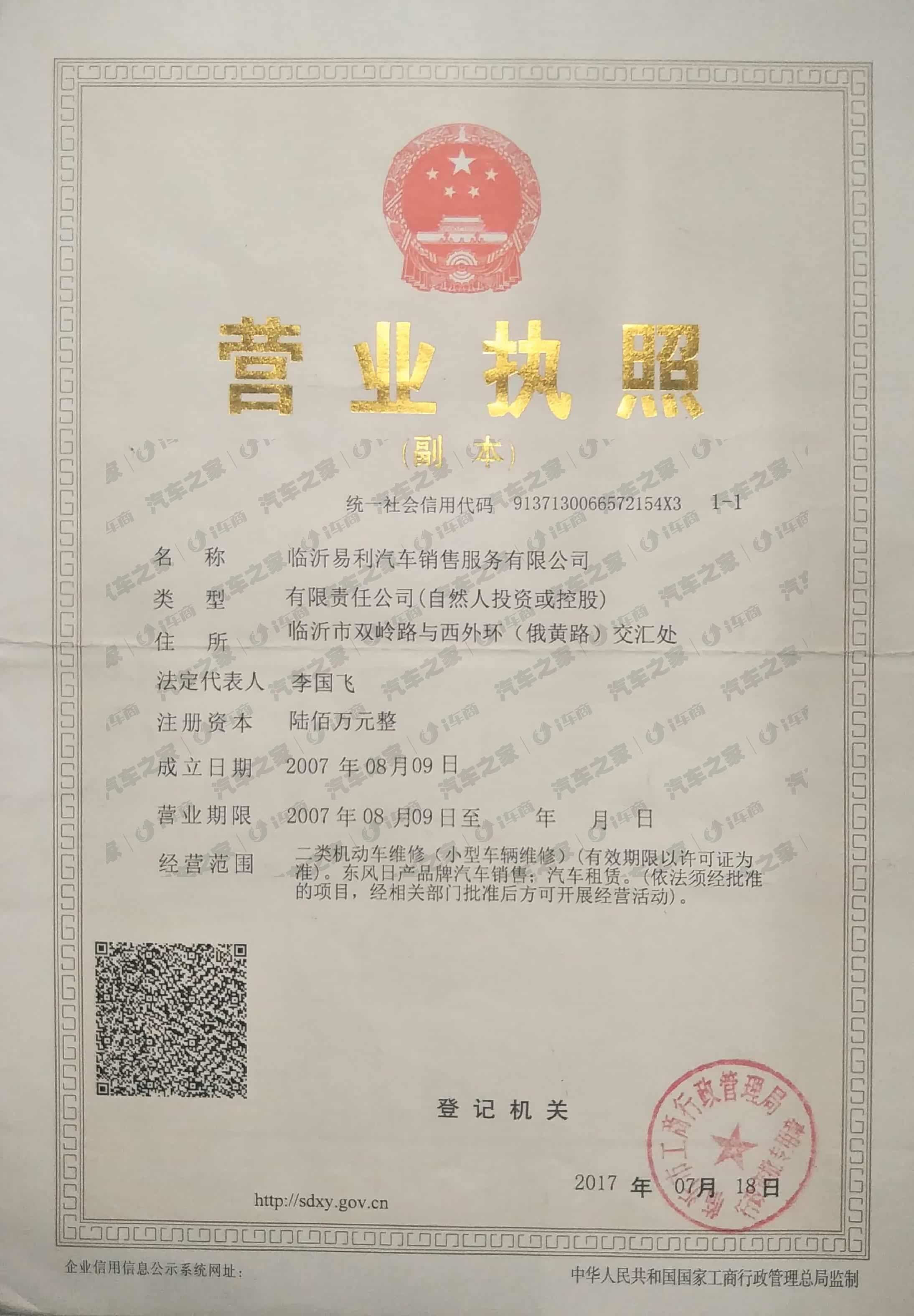 临沂易利汽车销售服务有限公司