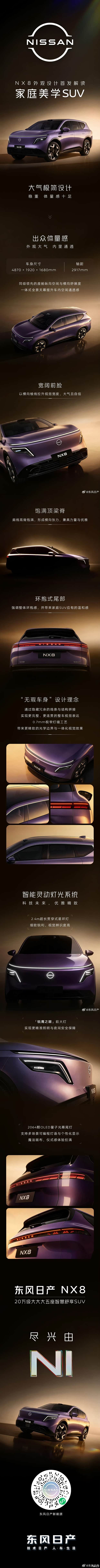 东风日产NX8外观解读Q网首发! 大气设计,自信且张力十足 无瑕车身,连贯、精致、高级 智能灵动灯光,科技感拉满 即将预售,欢迎关注! #东风日产NX8# #20万级大大大五座智慧舒享SUV# #合资大厂品质更安心