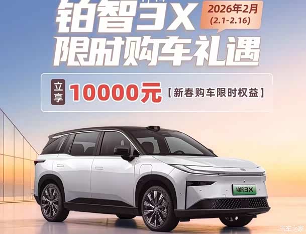 铂智3X限时购车礼遇(2026年2月1日-2月16日)立享10000元【新春购车限时权益】限时购车尊享 十四重礼遇