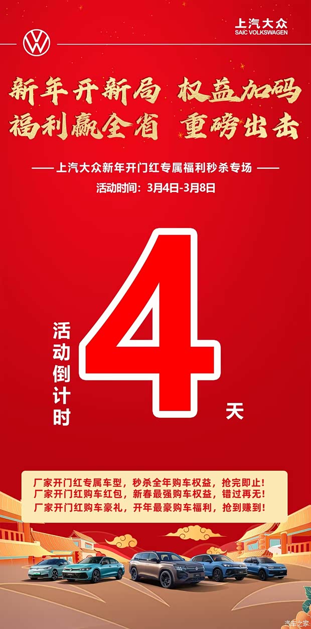 上汽大众新年开门红福利专场活动时间3月4日-3月8日